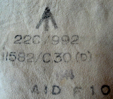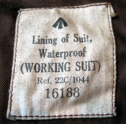 Another item that does not appear in the King & Humphrey 22C listing. It is somewhat similar in appearance to the later Sidcot Suit linings - but there is only one zip (this is Air Ministry marked). The suit also has a 'chunkier' feel to it compared to the Sidcot liner. There are buttons and loops to attach the lining to the actual Working Suit. Again, this was for use in the larger lifeboats.
