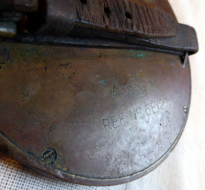 This is the rarer early version with a brass body. Later versions were made with bakelite. These are sometimes referred to as the 1932 pattern mirror - although they were not issued with the 1932 pattern Mae West. The nomenclature for 6E is 'Miscellaneous Instruments, Accessories and Unit Servicing Spares'. Made by J. & R.O. Ltd and dated 1939.